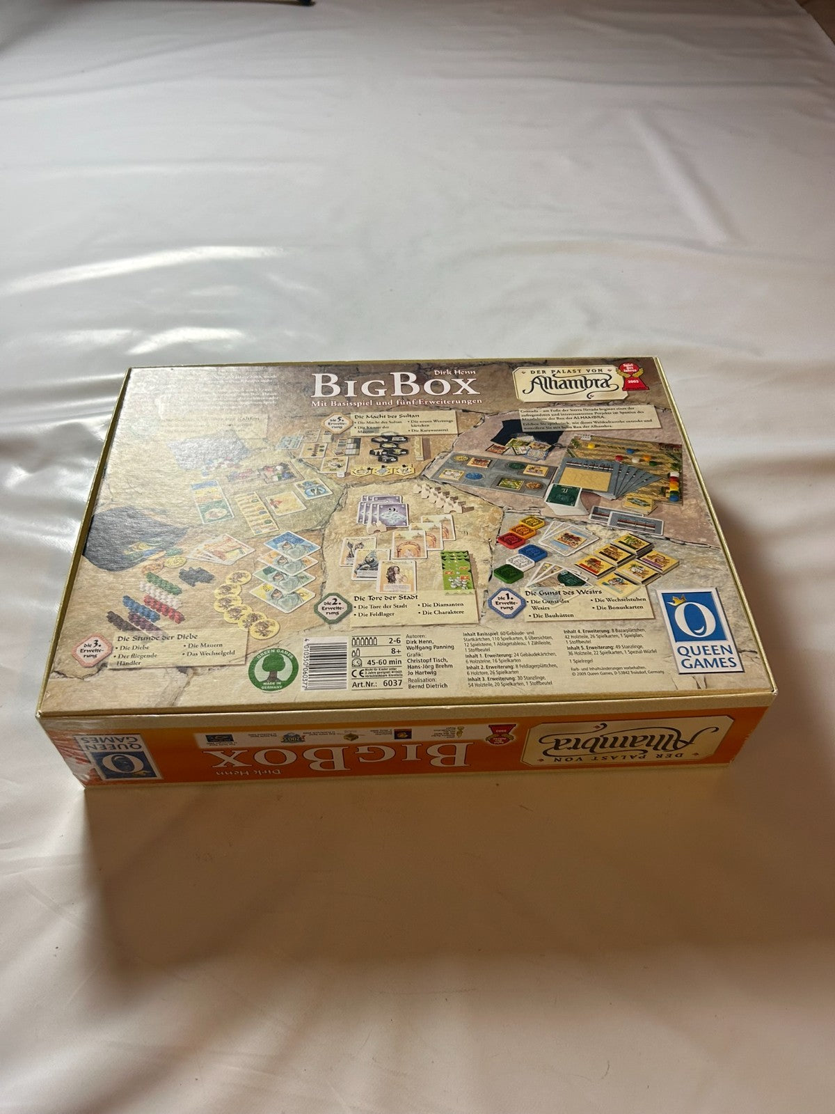 Alhambra Big Box von Queen Games ist die ultimative Sammlung des preisgekrönten Brettspiel-Klassikers, bei dem die Spieler ihre eigene prachtvolle Alhambra errichten. In dieser Ausgabe sind das Grundspiel sowie mehrere Erweiterungen enthalten, die für noch mehr Strategie, Vielfalt und Spannung sorgen. Mit cleverem Ressourcenmanagement und geschickter Planung gilt es, die schönsten Gebäude zu errichten und die meisten Punkte zu sammeln. Die Big Box ist vollständig und überzeugt mit der gewohnt hohen Queen Games-Qualität – perfekt für Strategiefans, Familien und Sammler anspruchsvoller Gesellschaftsspiele.