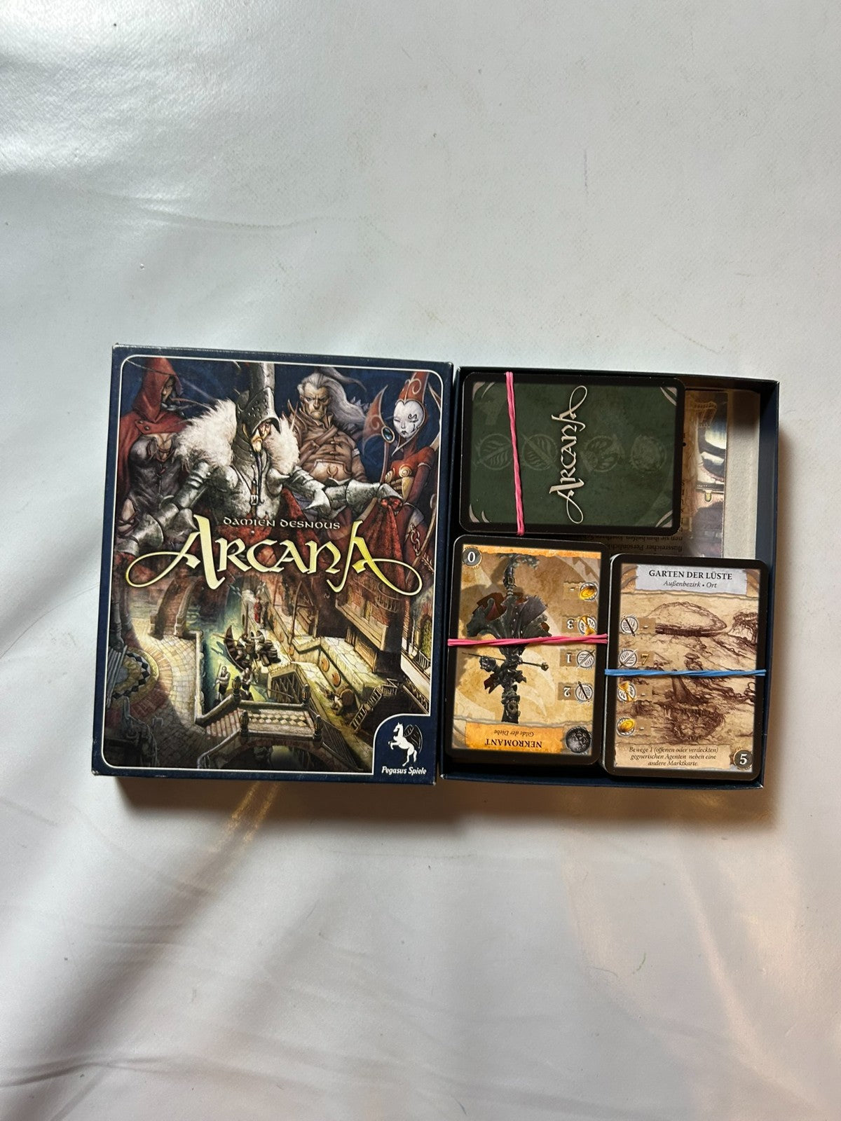 Arcana von Pegasus Spiele ist ein strategisches Kartenspiel voller Intrigen, Macht und Magie. Die Spieler führen rivalisierende Gilden an, sammeln einflussreiche Karten und wetteifern um Kontrolle und Ruhm. Dieses vollständige Spiel überzeugt durch taktische Tiefe, stimmungsvolles Design und hohe Wiederspielbarkeit – ideal für Fantasy- und Strategiespielfans.