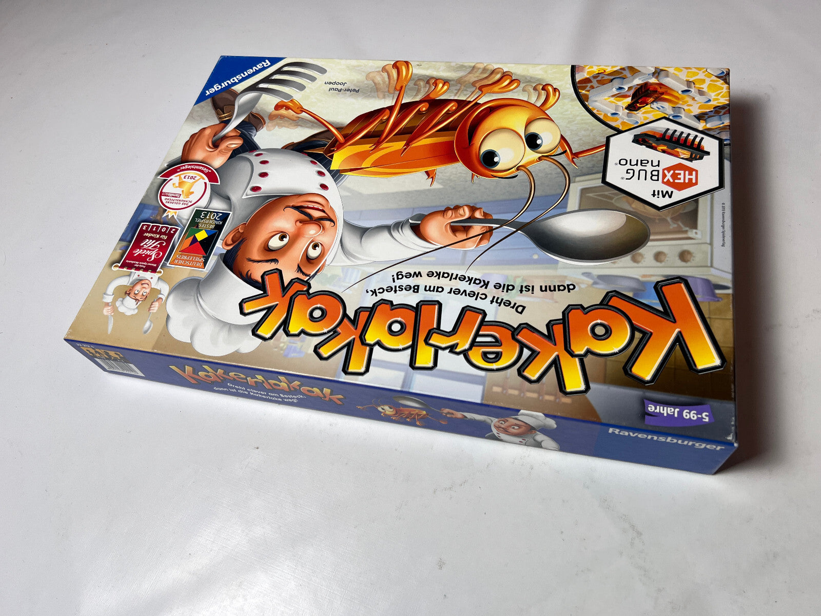 In Kakerlakak wimmelt eine elektronische Kakerlake durch ein Labyrinth aus Messern, Gabeln und Löffeln. Die Spieler würfeln und drehen entsprechend die Besteckteile, um der Kakerlake den Weg zu ihrer Falle zu ebnen. Jeder Fang bringt einen Chip, und wer zuerst fünf Chips sammelt, gewinnt das Spiel. Die Mischung aus Geschicklichkeit, Schnelligkeit und Glück sorgt für spannende Unterhaltung bei Kindern und Erwachsenen.