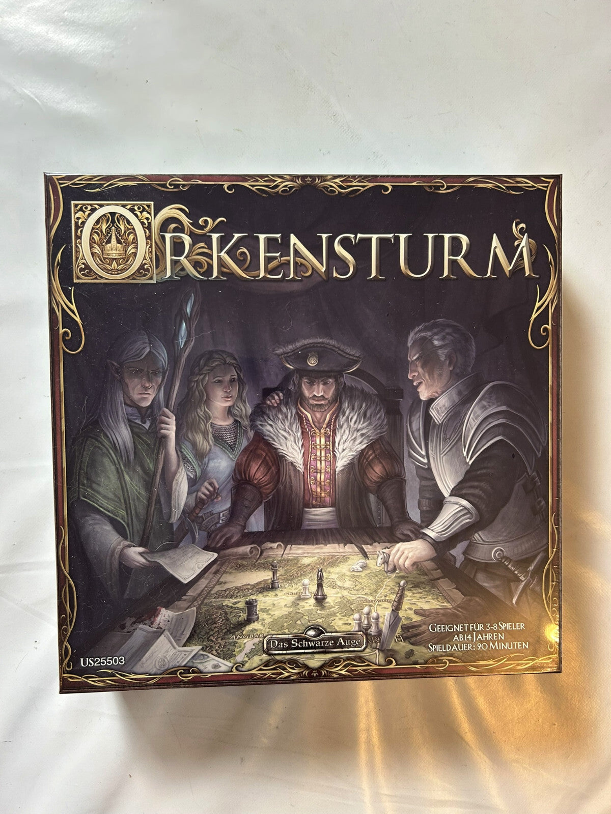 Das Brettspiel „Orkensturm – Das Schwarze Auge“ ist ein strategisches Spiel für 3 bis 8 Spieler ab 14 Jahren, das 2015 von Andrea Chiarvesio entwickelt und von Heidelberger Spieleverlag und Ulisses Spiele veröffentlicht wurde. Es spielt im Universum des bekannten Rollenspiels Das Schwarze Auge und versetzt die Spieler in die Zeit des Dritten Orkensturms im Jahr 1010 nach Bosparans Fall. Dabei kämpfen sie um Einfluss und Macht in der Hauptstadt Gareth, während Ork-Horden das Reich bedrohen.