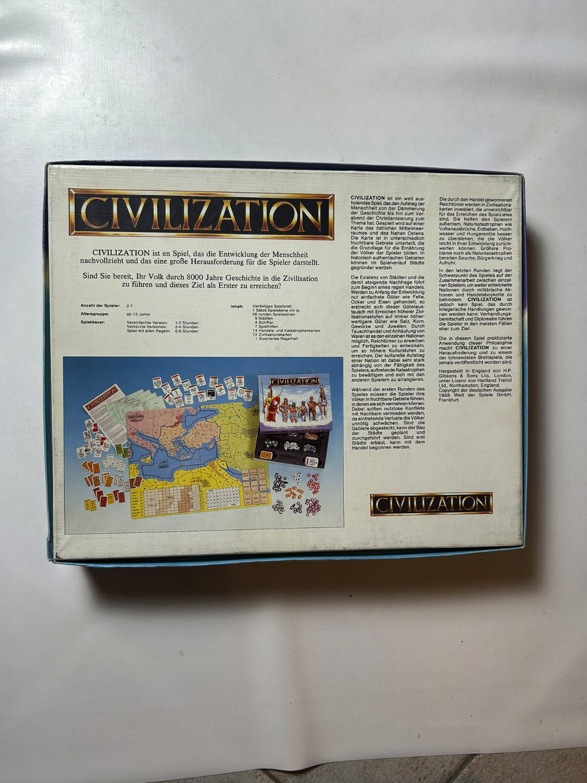 Civilization – Schreibe die Geschichte der Menschheit von Piatnik ist ein episches Strategiespiel, das die Entwicklung der Zivilisationen im Mittelmeerraum von der Antike bis zur Eisenzeit simuliert. Ursprünglich 1980 vom britischen Spieleautor Francis G. Tresham entwickelt, erschien die deutsche Ausgabe 1988 bei Piatnik/Welt der Spiele.