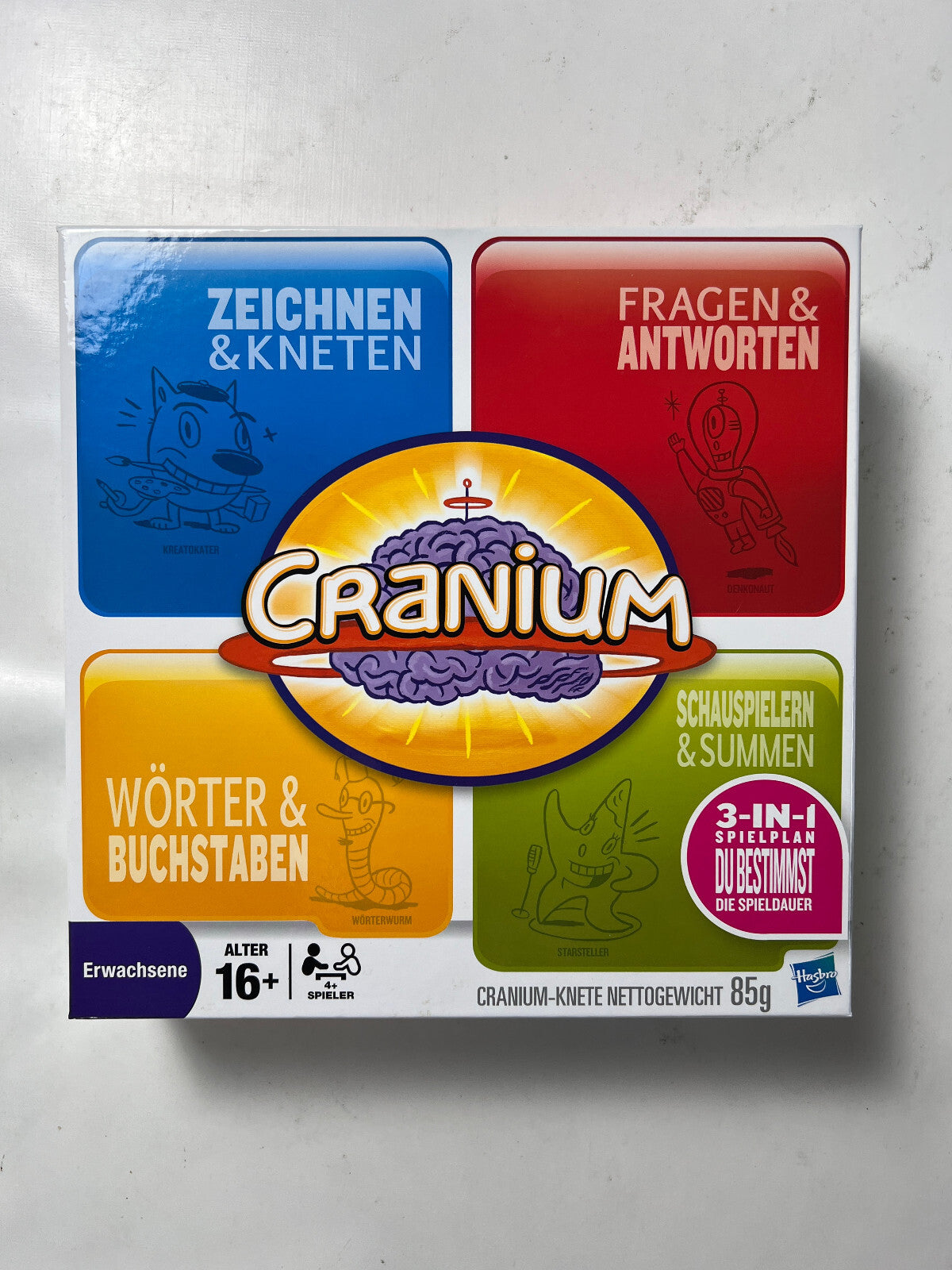 Das „Cranium“-Brettspiel von Hasbro aus dem Jahr 2009 ist ein kreatives Partyspiel für 4 oder mehr Spieler ab 16 Jahren. Es kombiniert Elemente aus verschiedenen beliebten Spielen wie Pictionary, Trivial Pursuit und Tabu und bietet abwechslungsreiche Aufgaben in vier Kategorien: