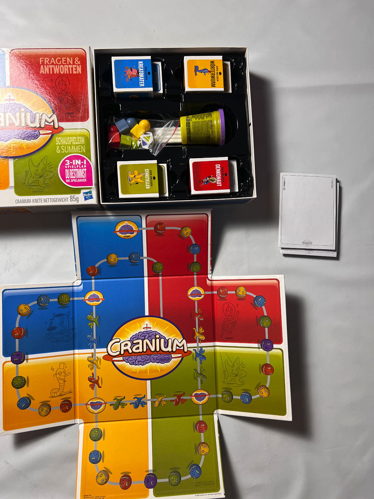 Das „Cranium“-Brettspiel von Hasbro aus dem Jahr 2009 ist ein kreatives Partyspiel für 4 oder mehr Spieler ab 16 Jahren. Es kombiniert Elemente aus verschiedenen beliebten Spielen wie Pictionary, Trivial Pursuit und Tabu und bietet abwechslungsreiche Aufgaben in vier Kategorien: