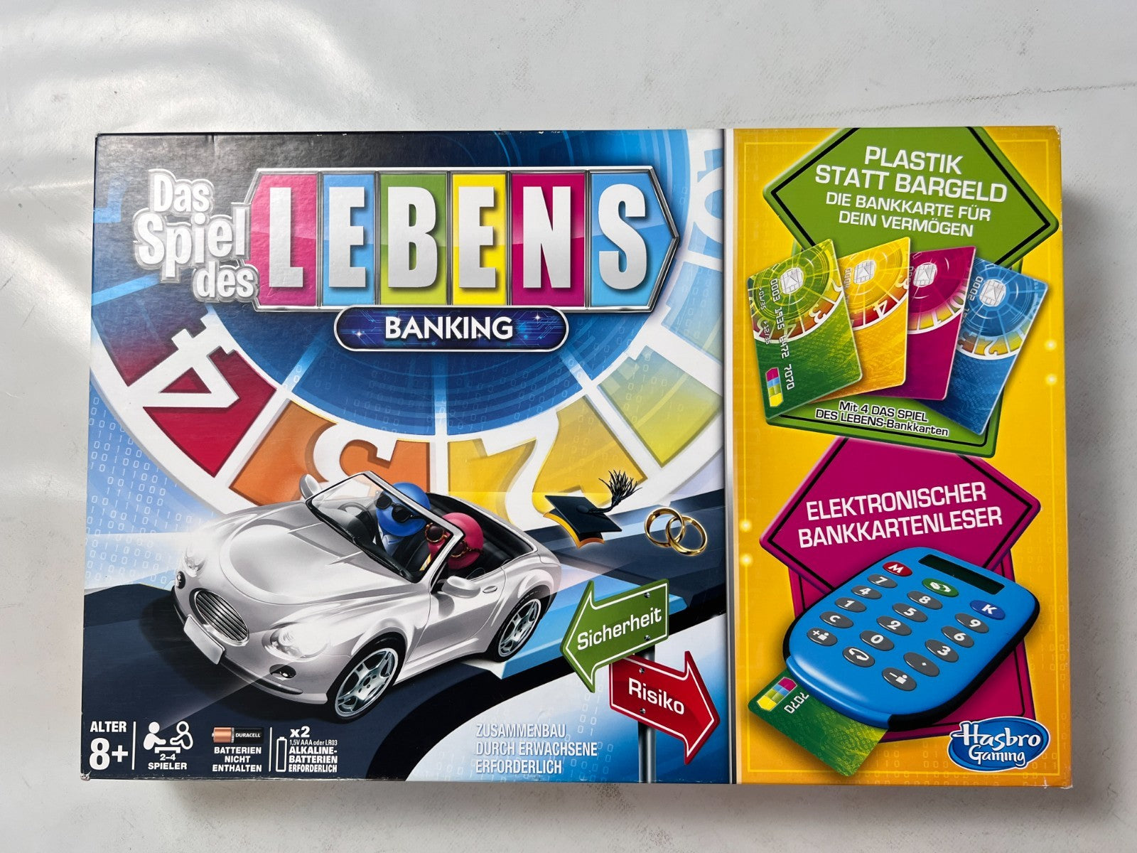 Das Das Spiel des Lebens Banking – Hasbro 2014 ist die moderne Version des beliebten Klassikers, bei der alle Geldgeschäfte bequem über elektronische Bankkarten laufen. Mit neuen Ereignissen, spannenden Lebenswegen und digitalem Banking-System sorgt es für abwechslungsreichen Familienspaß. Ein unterhaltsames Brettspiel für Jung und Alt – vollständig und spielbereit.