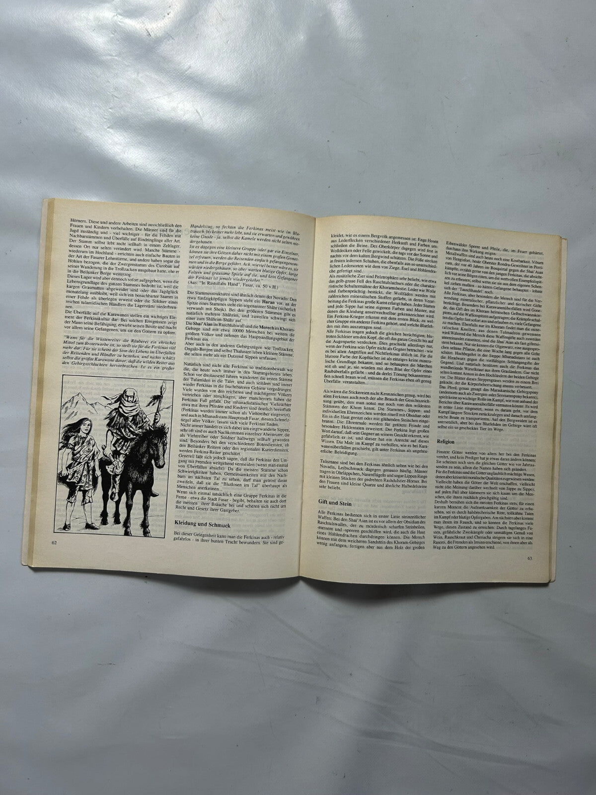 Dieses Heft bietet eine detaillierte Darstellung der geografischen, kulturellen und politischen Gegebenheiten der Region. Es werden die großen Städte mit ihren Basaren, Sklavenmärkten, mächtigen Sultanen und geheimnisvollen Magiern ebenso vorgestellt wie die Pflanzen, Tiere und Ungeheuer, die in der Sandwüste oder den Mangrovensümpfen hausen.
