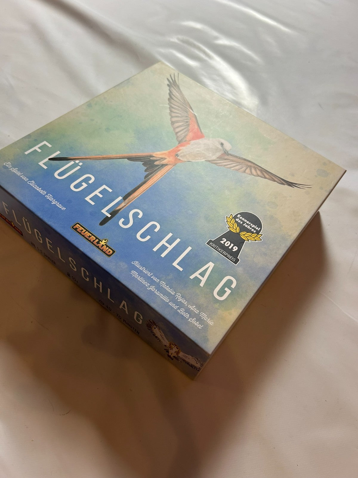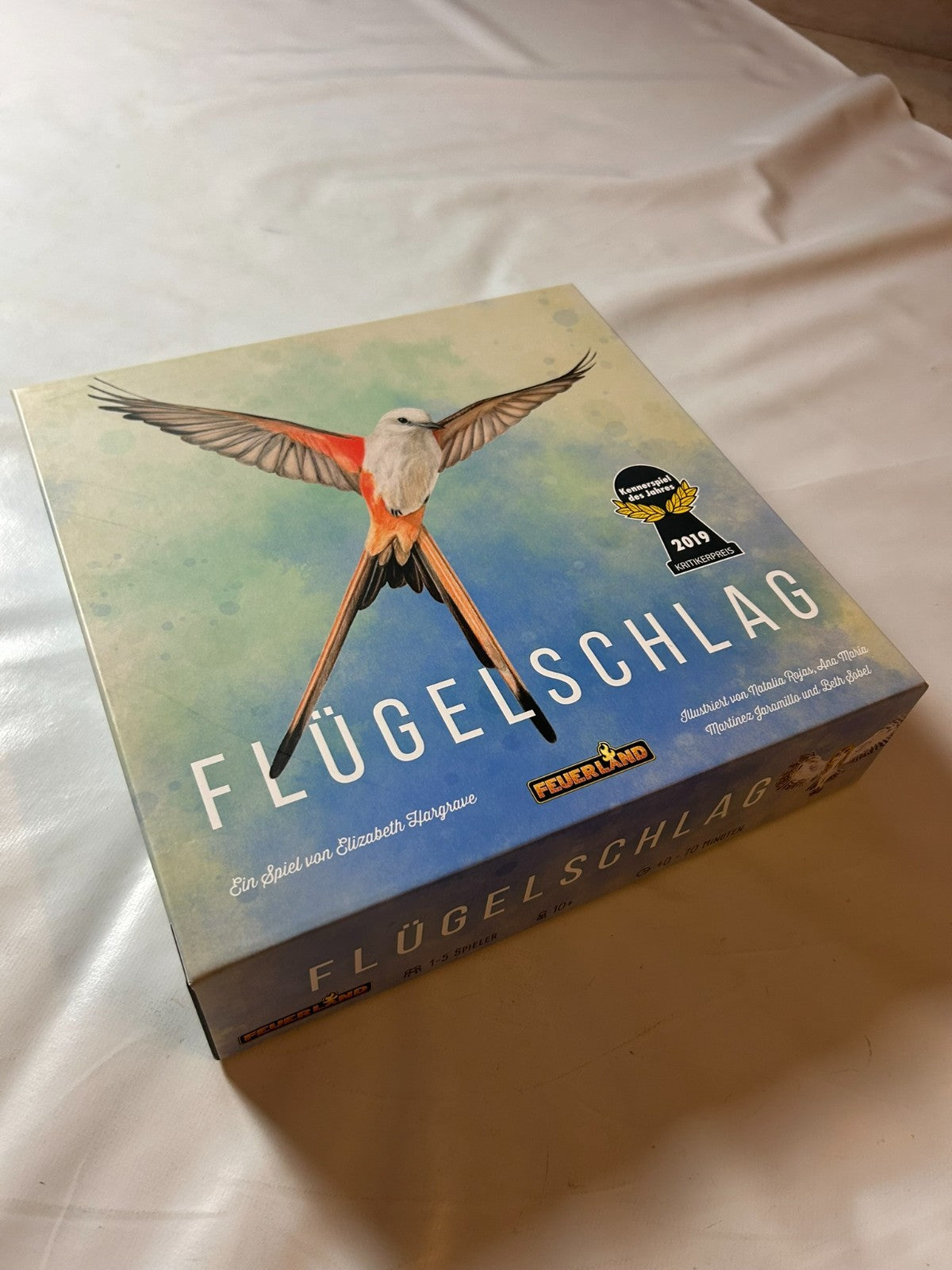 Flügelschlag von Feuerland / Pegasus Spiele ist das preisgekrönte Kennerspiel des Jahres 2019 und begeistert mit seiner Mischung aus Strategie, Naturthema und wunderschöner Gestaltung. Die Spieler schlüpfen in die Rolle von Vogelliebhabern, die versuchen, die besten Lebensräume mit vielfältigen Vogelarten zu besiedeln. Mit einzigartigen Spielmechaniken, hochwertigem Material und über 170 detailreich illustrierten Vogelkarten bietet Flügelschlag stundenlangen Spielspaß und enorme Wiederspielbarkeit. Das Spiel ist vollständig und überzeugt mit der gewohnt hohen Feuerland- und Pegasus-Qualität – perfekt für Strategiefans, Sammler und Liebhaber moderner Brettspiele.