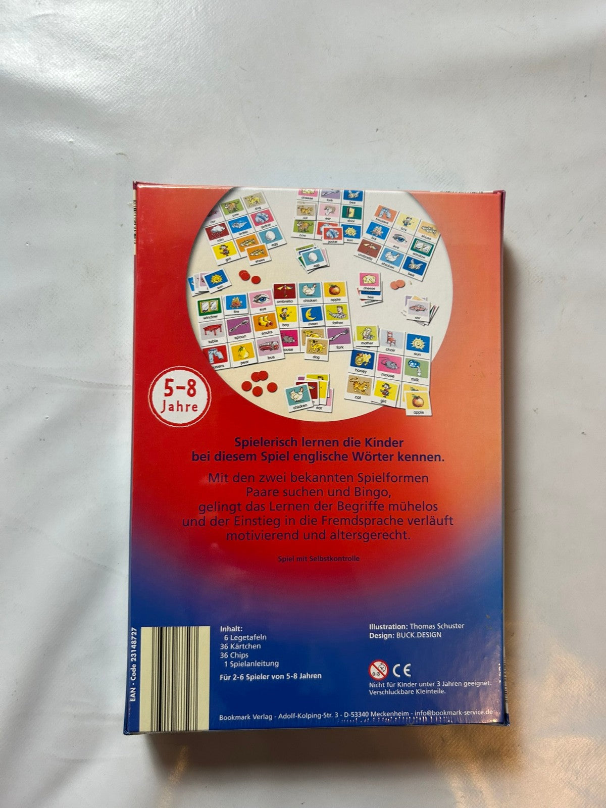 „Ich lerne Englisch“ vom Bookmark Verlag ist ein liebevoll gestaltetes Lernspiel für Kinder im Alter von 5 bis 8 Jahren. Spielerisch und mit viel Spaß werden erste englische Wörter, Begriffe und Sätze vermittelt – ideal für den Einstieg in die Fremdsprache. Perfekt geeignet für Familien und den frühen Englischunterricht. Neu in Folie – ein tolles Geschenk für kleine Sprachtalente und wissbegierige Kinder.