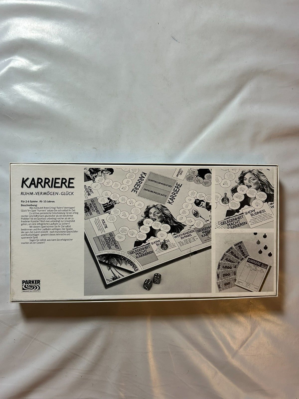 Das Karriere – Ruhm, Vermögen, Glück! – Parker 1982 ist ein klassisches Brettspiel, bei dem Spieler ihren Lebensweg wählen und zwischen Ruhm, Geld oder Glück entscheiden. Mit nostalgischem Design und abwechslungsreichem Spielverlauf bietet es unterhaltsame Runden voller Strategie und Zufall. Ein beliebter Spieleklassiker der 80er-Jahre – vollständig und in sehr gutem Zustand.