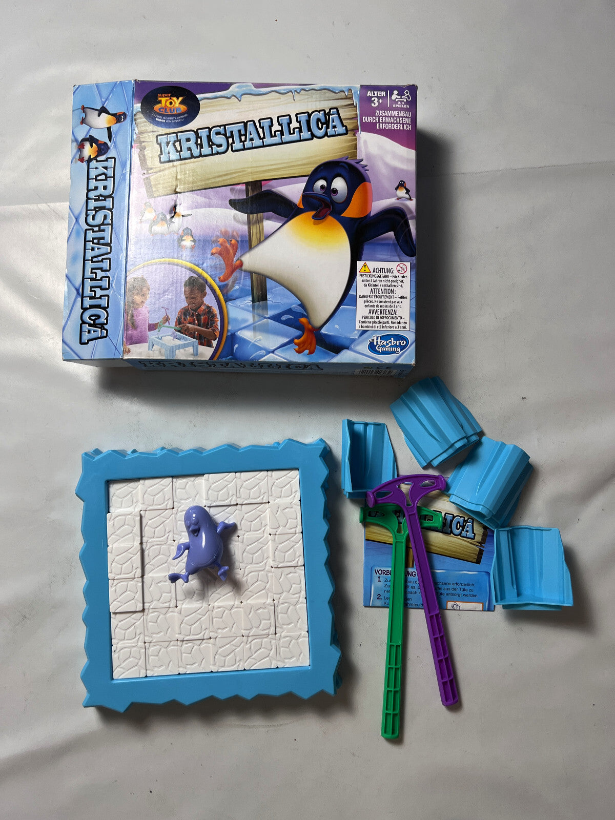 Kristallica ist ein unterhaltsames Geschicklichkeitsspiel von Hasbro, das besonders für Kinder im Alter von 3 bis 6 Jahren geeignet ist. In diesem Spiel geht es darum, mit kleinen Hämmern vorsichtig Eiswürfel aus einem Kunststoffrahmen zu entfernen, ohne dabei den Pinguin in der Mitte zum Fallen zu bringen. Das Spiel fördert die Feinmotorik und Konzentration der Kinder auf spielerische Weise.
