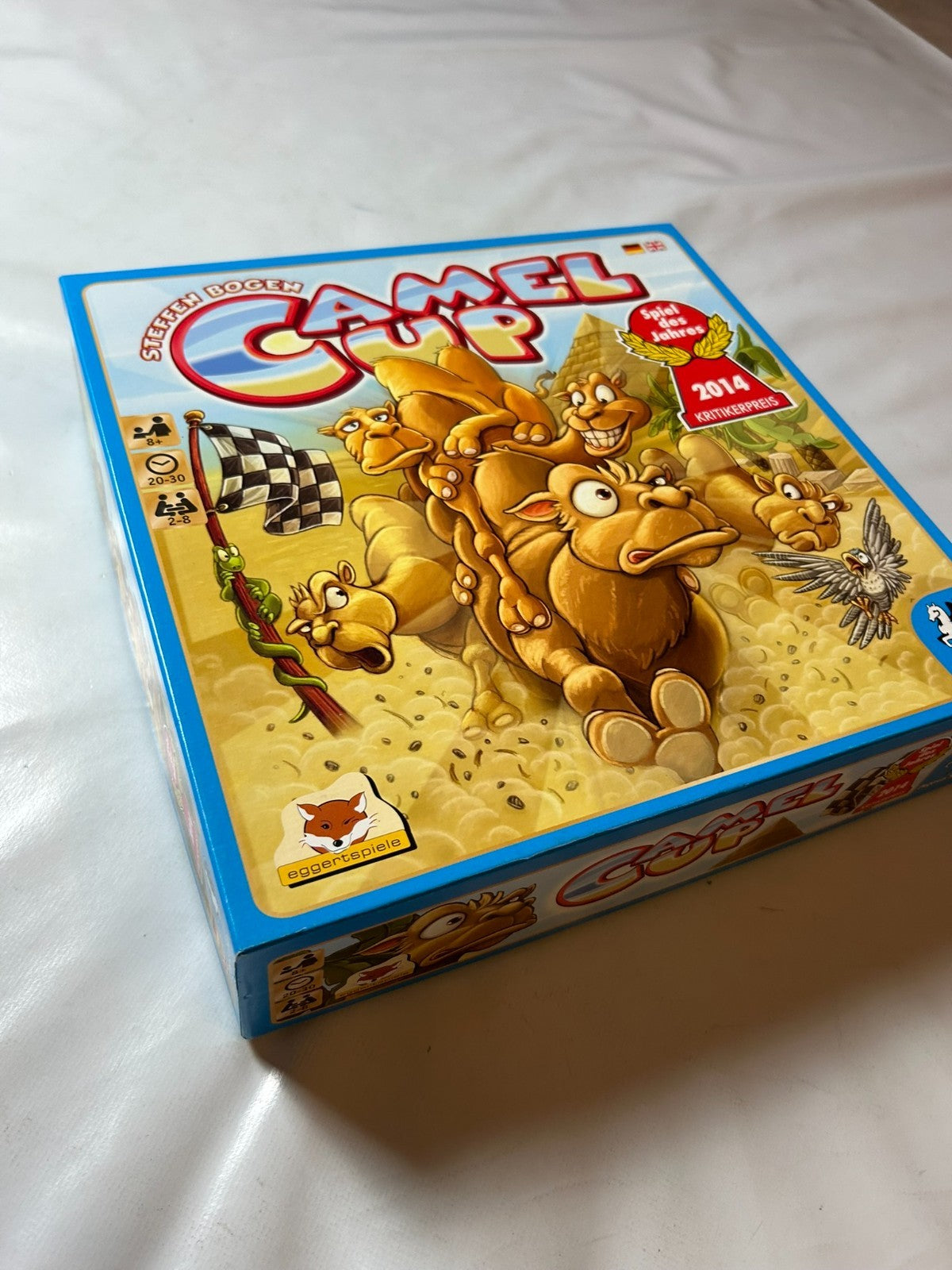 Camel Up (auch bekannt als Camel Cup) von Pegasus Spiele ist ein rasantes Gesellschaftsspiel, bei dem Spieler auf wilde Kamelrennen wetten. Mit jeder Runde sorgt das unvorhersehbare Rennen für Spannung, Spaß und überraschende Wendungen. Dieses vollständige Spiel begeistert durch sein originelles Konzept, einfache Regeln und hohen Unterhaltungswert – ideal für Familien und Freunde, die gerne lachen und taktieren.