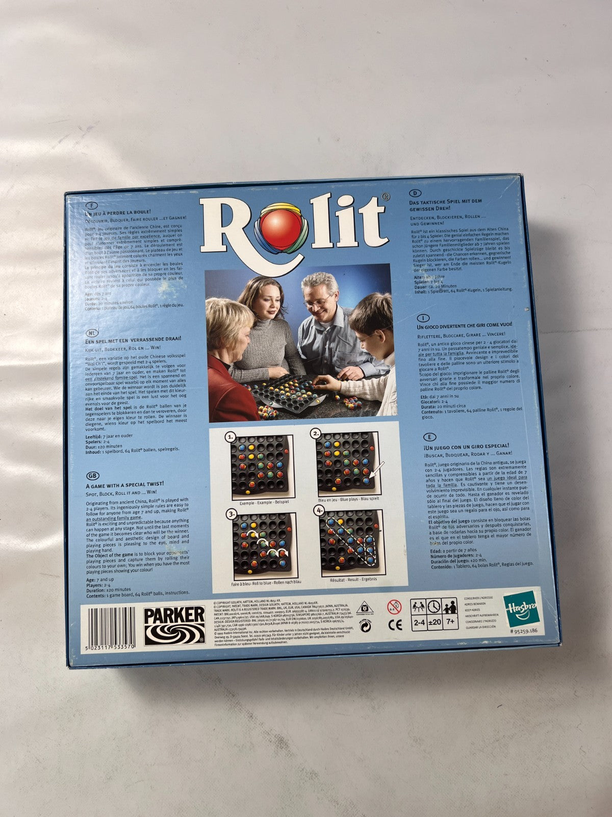 Das Rolit – Parker 1999 ist ein klassisches Strategiespiel im bunten 90er-Retro-Stil. Ziel ist es, die farbigen Kugeln der Gegner durch geschicktes Legen zu drehen und das Spielfeld zu dominieren. Ein taktisches und unterhaltsames Familienspiel mit nostalgischem Flair – vollständig und in sehr gutem Zustand.