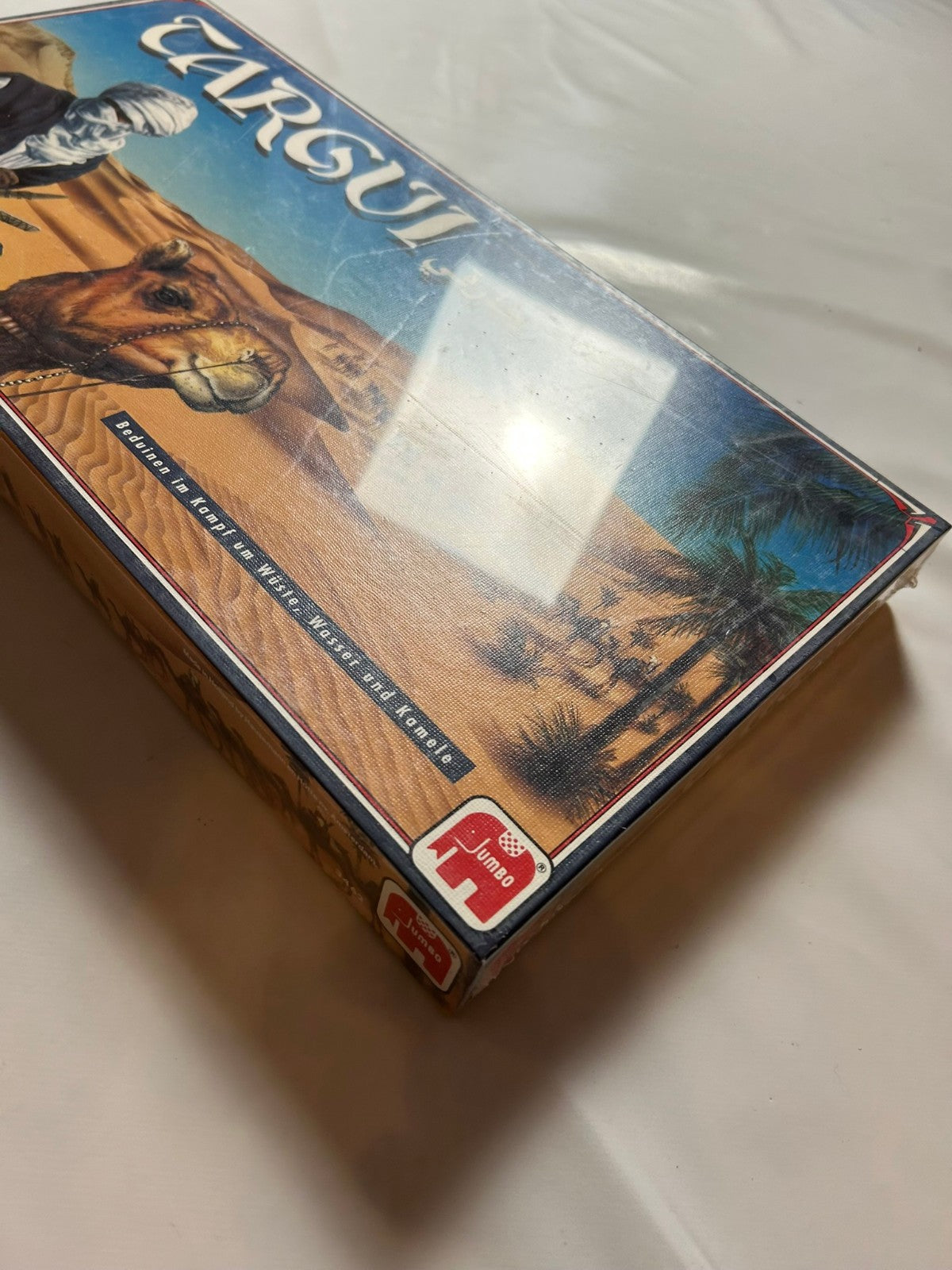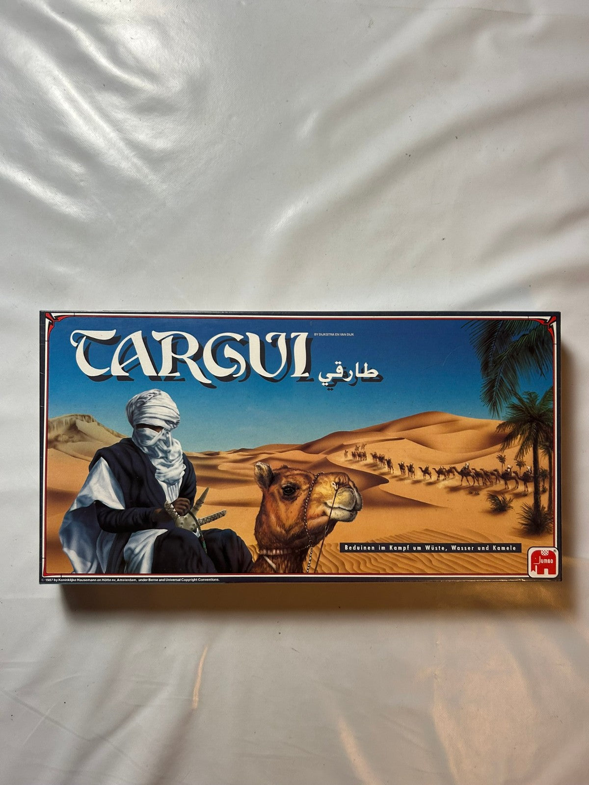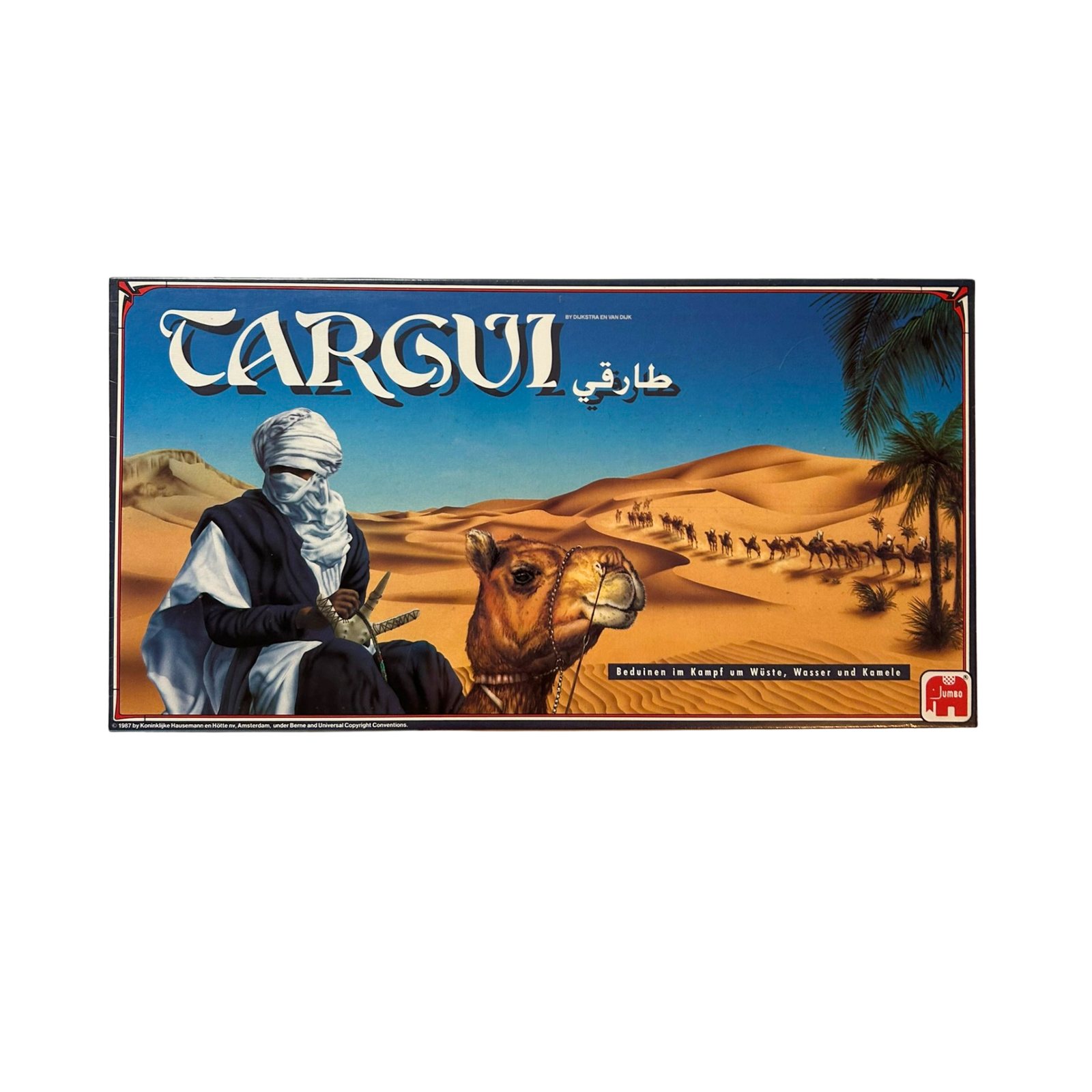 Targui – Beduinen im Kampf um Wüste, Wasser und Kamele! Das Strategiespiel von Jumbo aus dem Jahr 1987 erscheint hier neu in Folie und entführt dich in ein taktisches Abenteuer in der Sahara.
